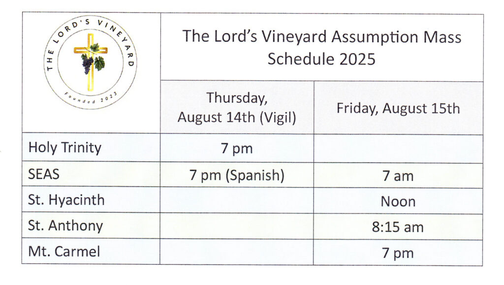 Sunday – 10 AM Mass, 11:30 AM (Spanish)